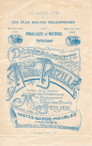 Nicolas BAZILLE, originaire de Val d’Isère, qui vient tenter sa chance comme transporteur. Ou plutôt comme “voiturier” comme on les nommait à l’époque. Avec comme équipement charrettes et chevaux, il commence à transporter du vin, des meubles et diverses choses. Il se spécialise progressivement dans le transport de meubles ; ce sont les débuts du métier de déménageur. Il se taille rapidement une belle clientèle, dans la région mais aussi à l’étranger, multipliant les chargements en port de Sète.